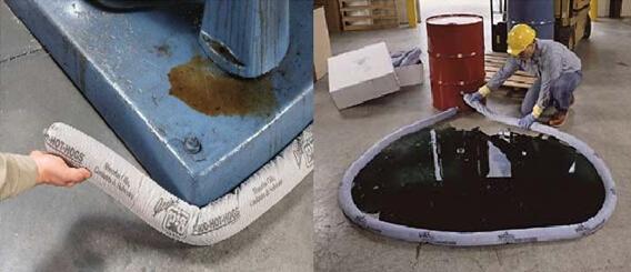 機(jī)械溢漏在日常生產(chǎn)中是非常普遍的現(xiàn)場(chǎng),如機(jī)械老化、切削液迸濺等都會(huì)使得車間地面存留油污。傳統(tǒng)的處理方式效果并不理想,并且工作量大。而用PIG?吸附產(chǎn)品可吸收并控制過度噴液現(xiàn)象,從而打造一個(gè)干凈的工作環(huán)境。